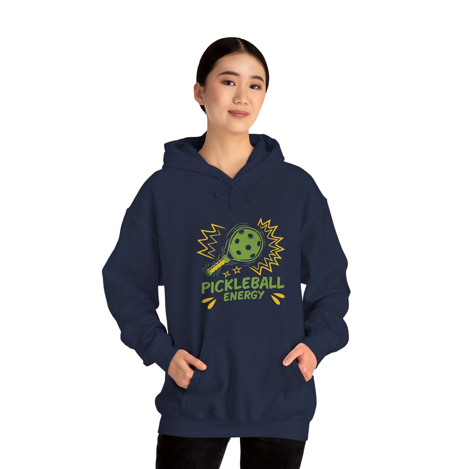 The striking color combination and bold graphics of the Pickleball Energy design set this hoodie apart, ensuring that you'll stand out in a crowd. The vibrant hues and energetic pattern exude a sense of fun and playfulness, perfectly capturing the spirit of the pickleball community. Whether you're a seasoned player or just starting out, this hoodie is a great way to showcase your passion for the sport while staying comfortable and stylish.